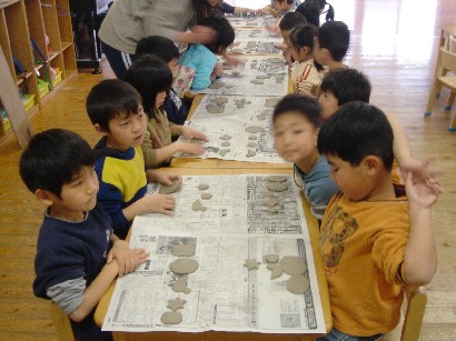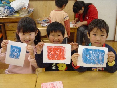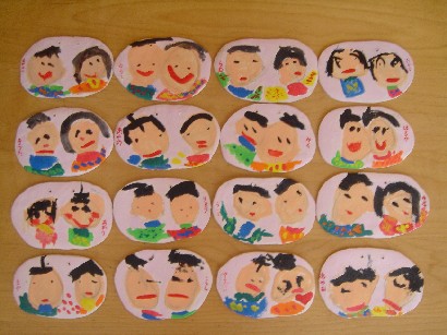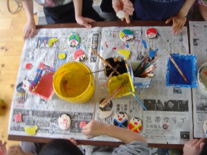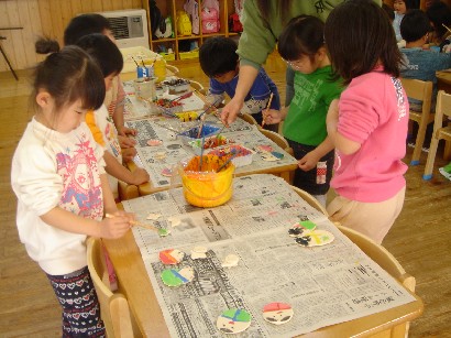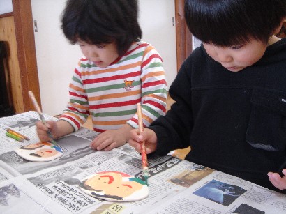 バンビ組さんは、焼きあがった陶板におひな様の絵付けを挑戦しました。お顔を二人並べて、きれいな着物を描いて・・・みんなの表情は真剣そのもの。