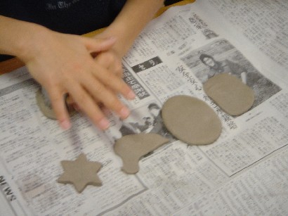 この前作ったおひなさまパーツが焼きあがり、今日は絵付けをしました。