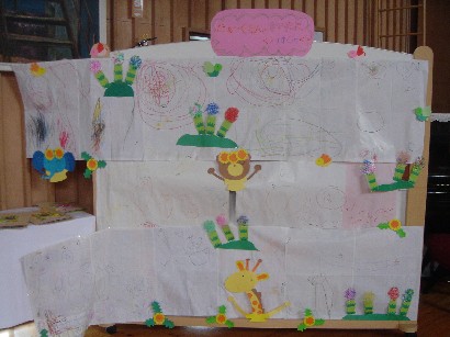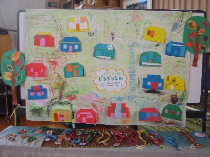 ただ今保育園体育館にて開催中の作品展、今日はバンビ&りす組のお友達の作品の一部をご紹介します。 まずは、バンビ組さん。「バンビ村どうぶつえん」と題し、いろんな表情の家が作られています。おうちの周りにはゆかいな動物達がいっぱい!