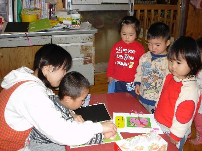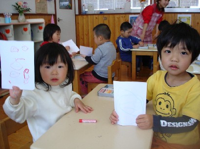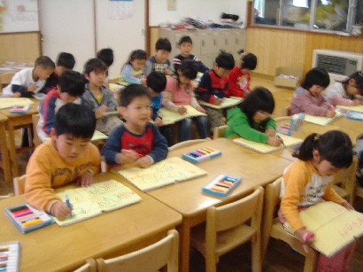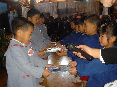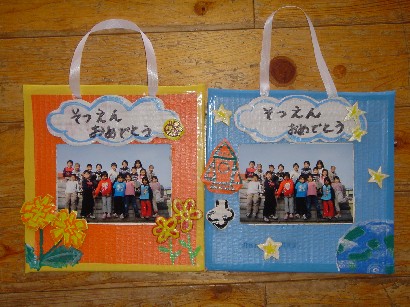 今日で今年度の保育は終了しました。子ども達は保育園の生活でのいろんな体験を通して、心身ともにずい分大きくなり、たくましくなりました。私たちも子ども達から多くのことを学びました。 おとうさん、お母さん、これからも一緒に手を取り合って、子どもたちの成長を見守りましょう。 保育園からのプレゼントの冊子「卒園のしおり」&「あゆみ」は、保育園のこの一年の様子をまとめたものです。心を込めて作成しました。お子様の成長の記録のひとつとして大切にしていただければ幸いです。また、ご感想を聞かせていただけたらうれしいです。