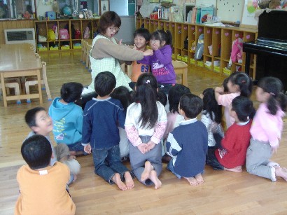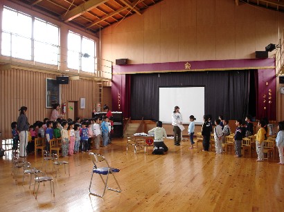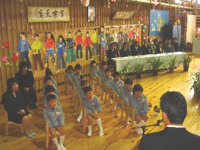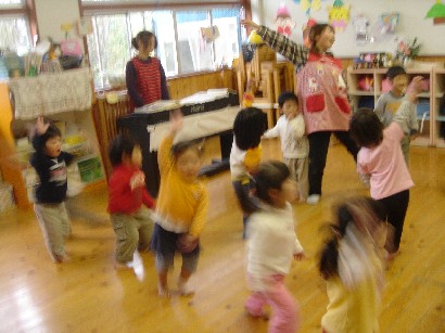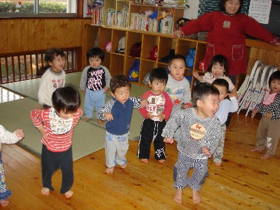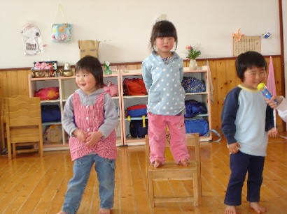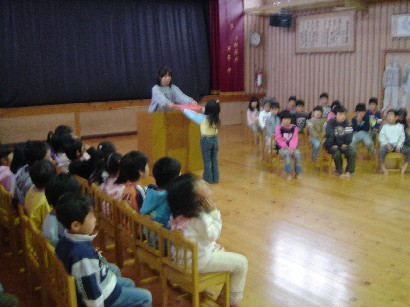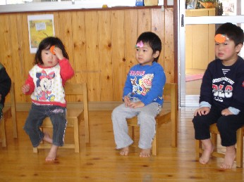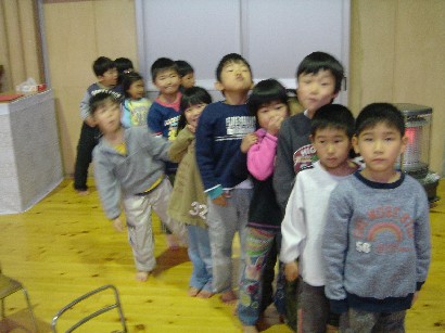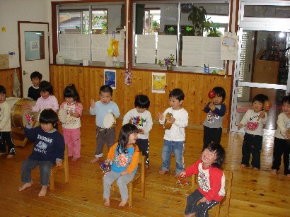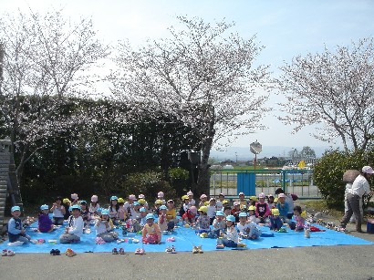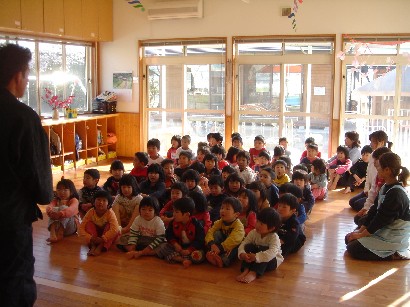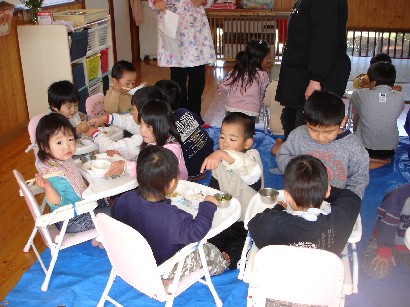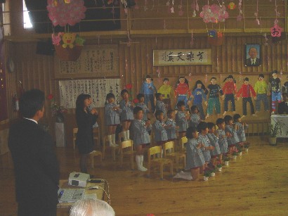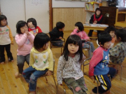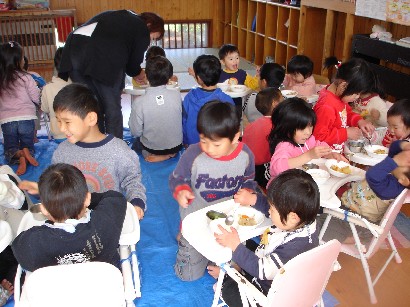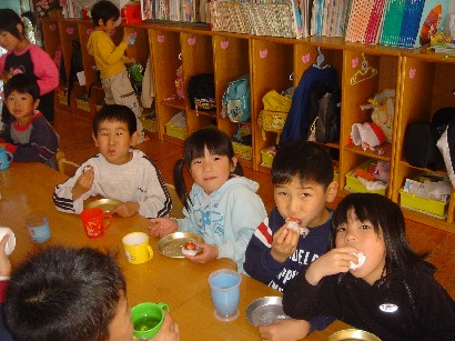 おやつを食べたあと、保育終了式がありました。「みんな、この一年間楽しかったねぇ」 |