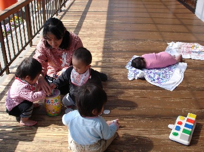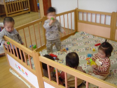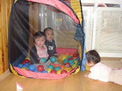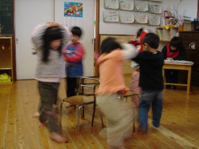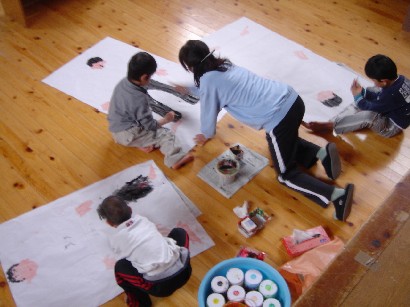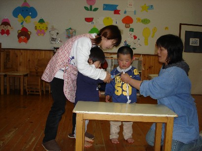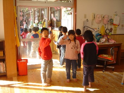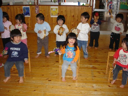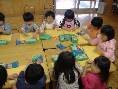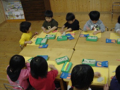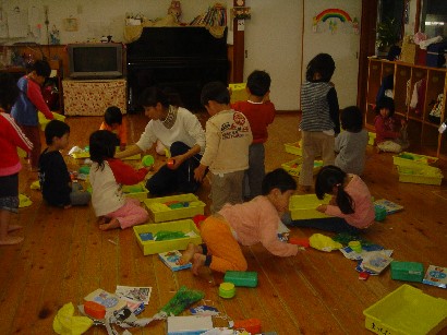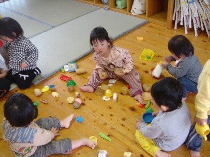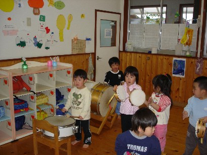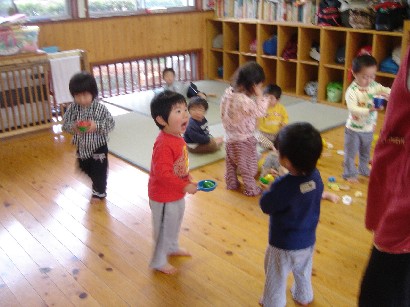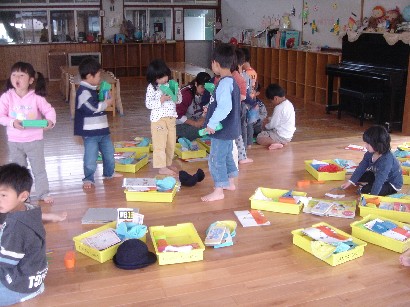 バンビ組さんはお引越し準備で大忙しです。自分の道具を整理したり、トレーをきれいにふいたり・・・。もうすぐパンダ組みさんです。いよいよ待ちに待った和太鼓が始まります。