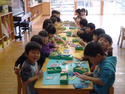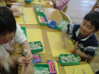 パンダ組さんもお引越しの準備で大忙しです。粘土のついたトレーをきれいにしたりしていました。4月からいよいよ1番大きいさんのぞう組さんです。どんなドキドキわくわくがあるかなあー。楽しみです! |