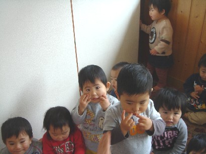 お釈迦様に供えてある「おもち」が気になるお友だちも・・・ |