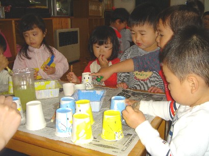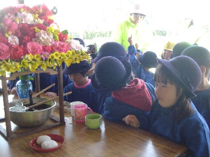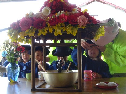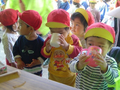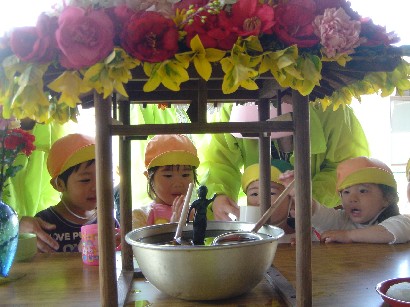 そして甘茶をいただきます。おいしくって、もっと欲しがるお友達も |