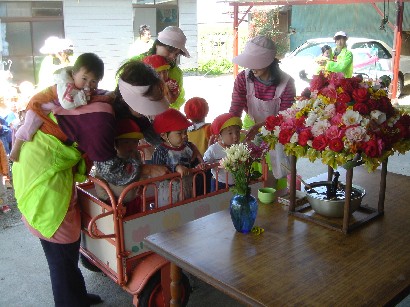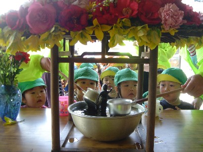 大きいお友達は、自分でお釈迦様に甘茶をかけました。 |